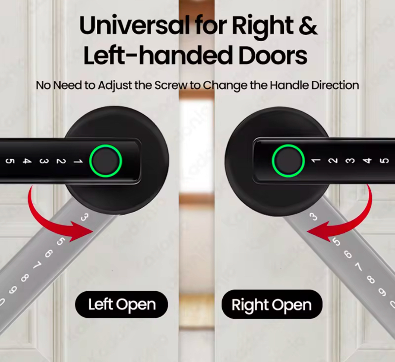 1. [ویژگی های کاربر پسند]قفل هوشمند دستگیره در ما، راحتی کاربر و سهولت استفاده را در اولویت قرار می دهد.این دارای یک رابط کاربر پسند است که تنظیم و مدیریت مجوزهای دسترسی را آسان می کند.چه استفاده از رمزهای عبور، کارتهای آیسی، اثر انگشت، کلیدها یا برنامه گوشیهای هوشمند را ترجیح میدهید، قفل تجربه کاربری یکپارچه و بصری را ارائه میدهد.